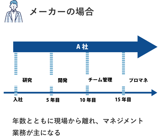 当社では技術職を中心に、現場で長期的に専門領域のプロジェクトに携わることができます。